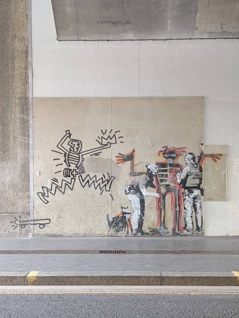 ~Banksy Basquiat~所用を済ませてまた地下鉄で移動。近くにあると聞いていたので見学しに行きました。厚いアクリル板のようなもので保護されていましたが、もちろん町なかにあるので無料で見られました。この写真の他にも近くに2枚ありました。