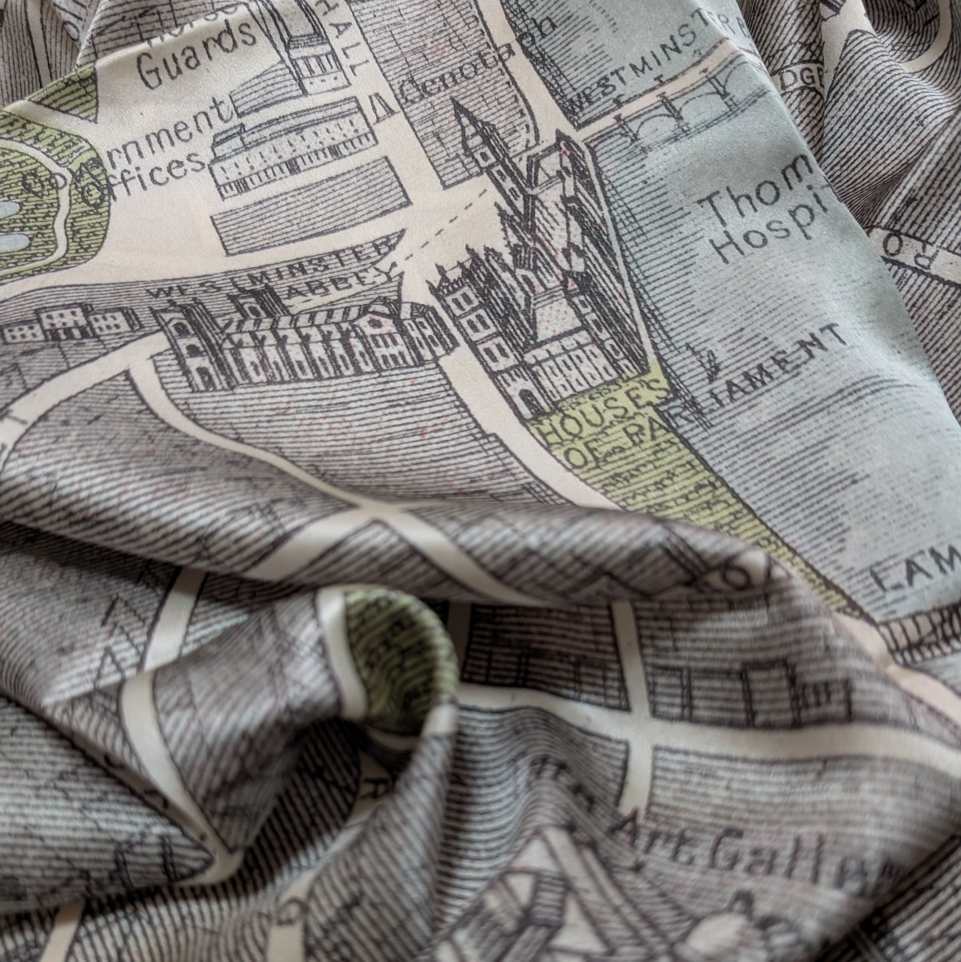 シルクスカーフ【London Map グレー】Helen Chatterton textiles 00209-Grey