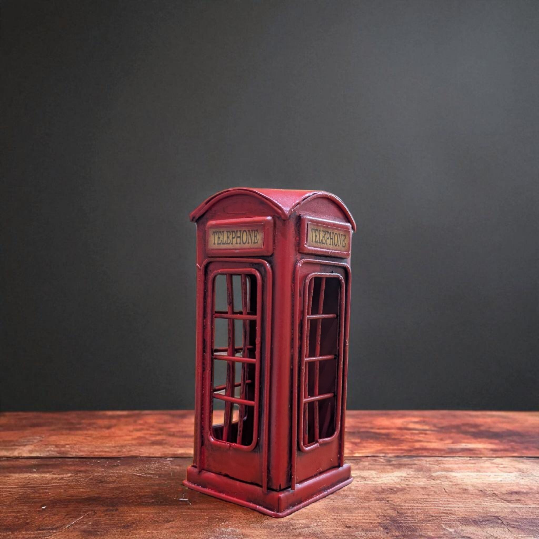 イギリスのアイコン的存在の赤い電話BOXをヴィンテージ風にアレンジしたミニチュア。手のひらサイズの電話BOXです。お部屋に飾るとイギリス気分を味わえそうです。イギリスを訪れると一緒に写真を撮りたくなる赤い電話BOXはスマートフォンの普及により公衆電話としての電話BOXは数が減ってきていますがATMやSHOP、フラワーBOX等として再利用されています。ヴィンテージ風にラフな仕上がりとなっています。ヴィンテージ加工に個体差がございます。