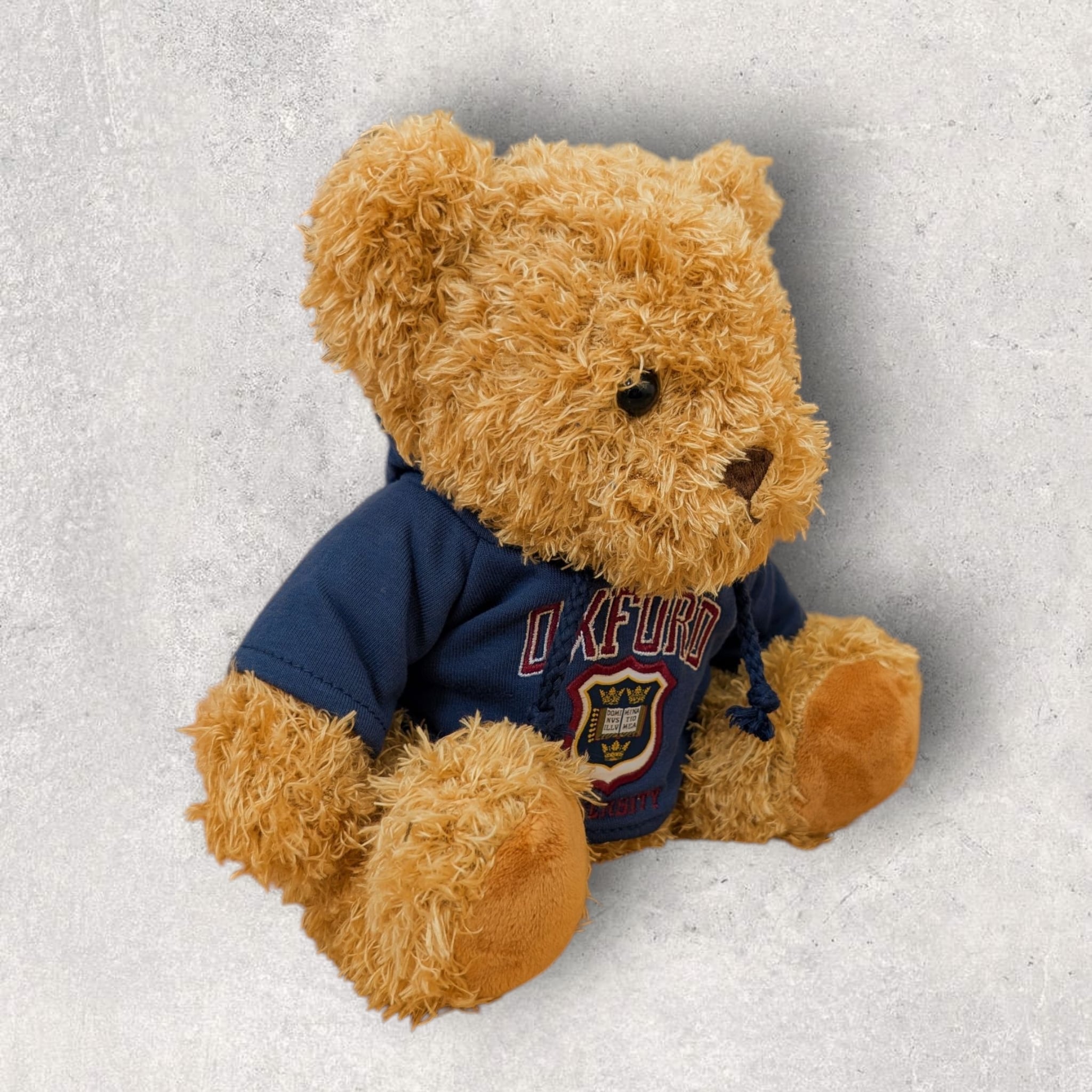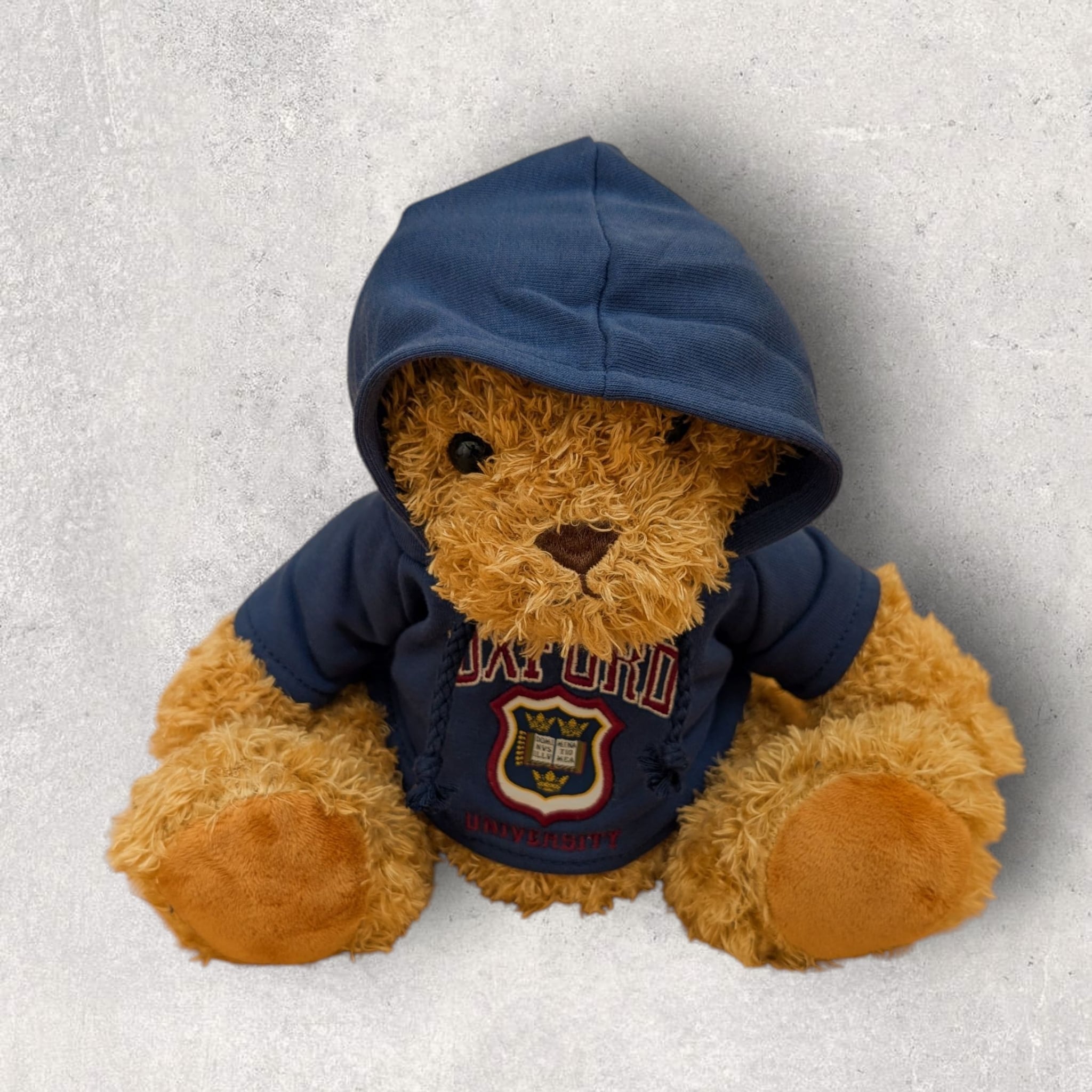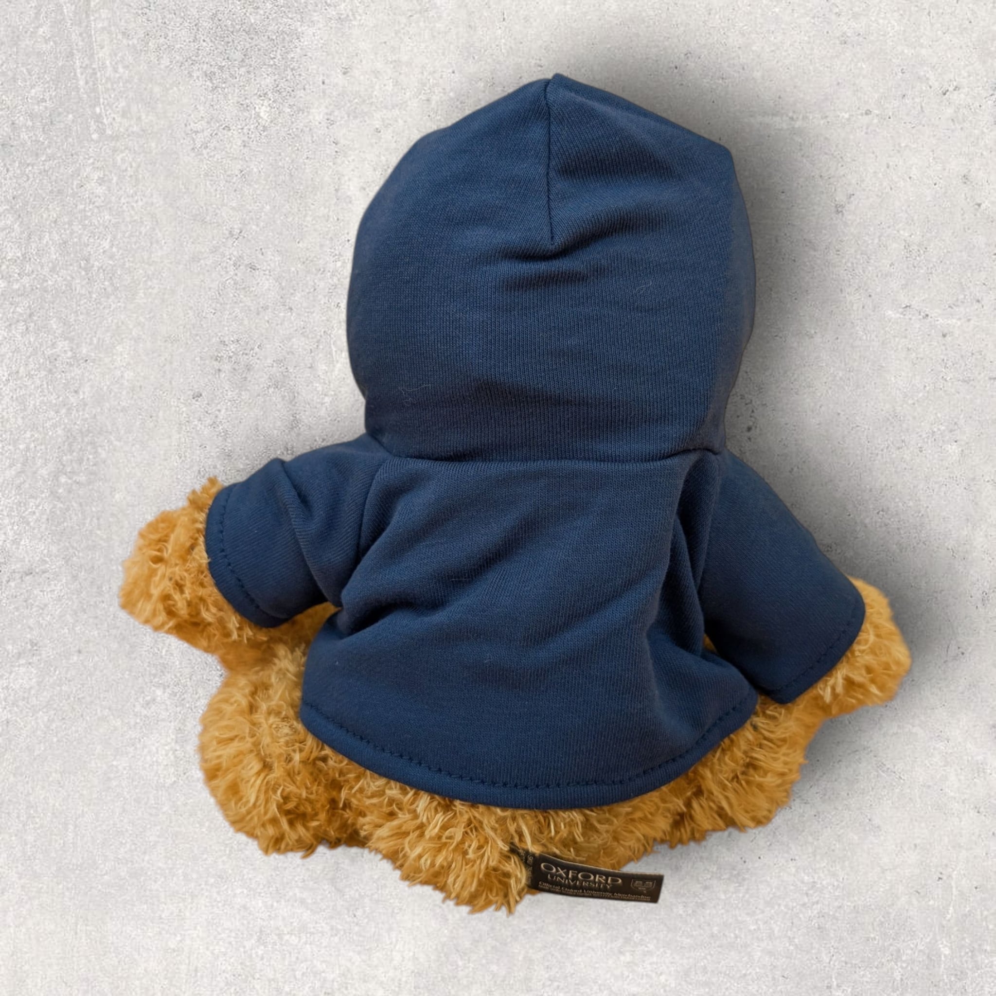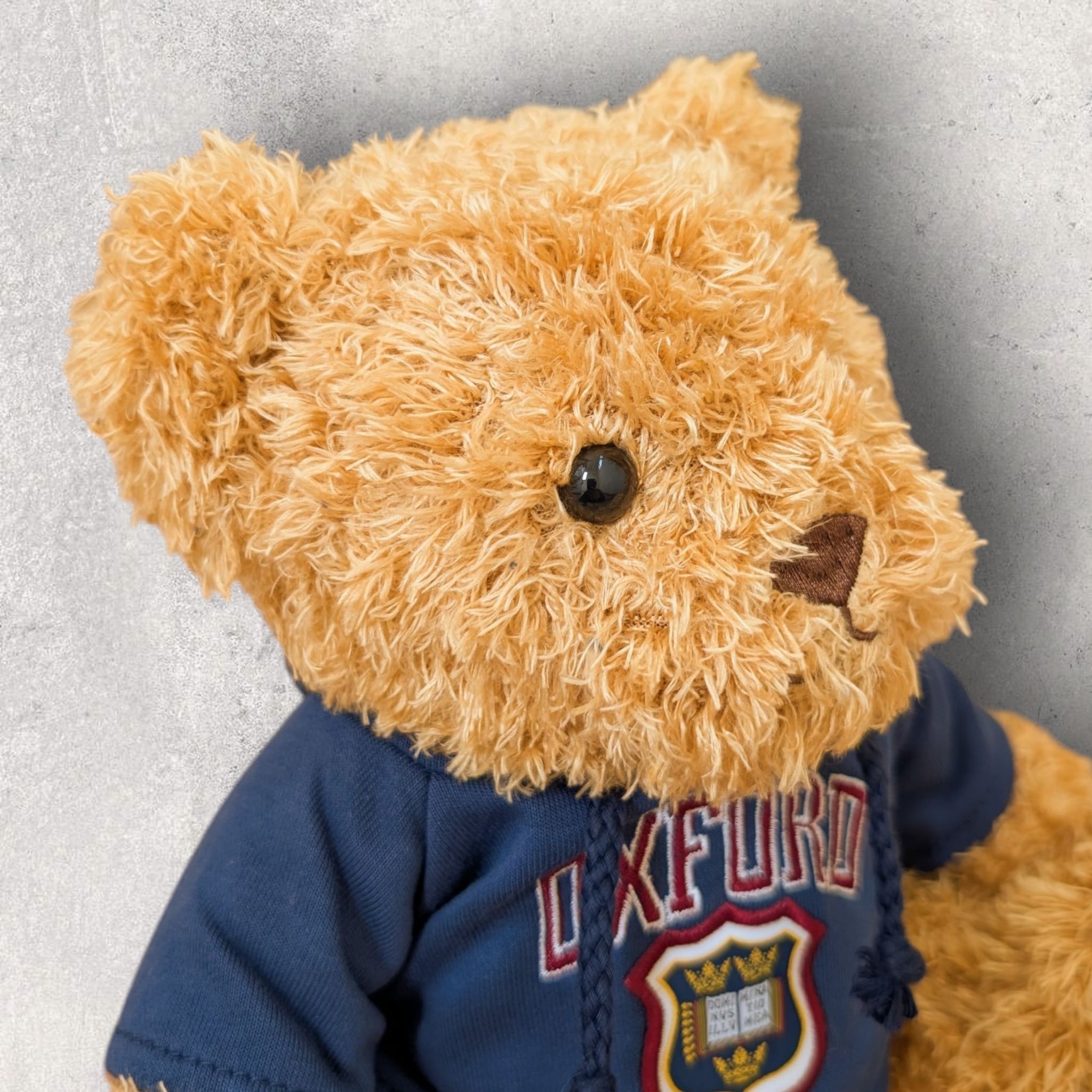 オックスフォード大学オフィシャルライセンスのテディベア。NAVYのパーカーにオックスフォード大学のシールド型の紋章が刺繍されています。