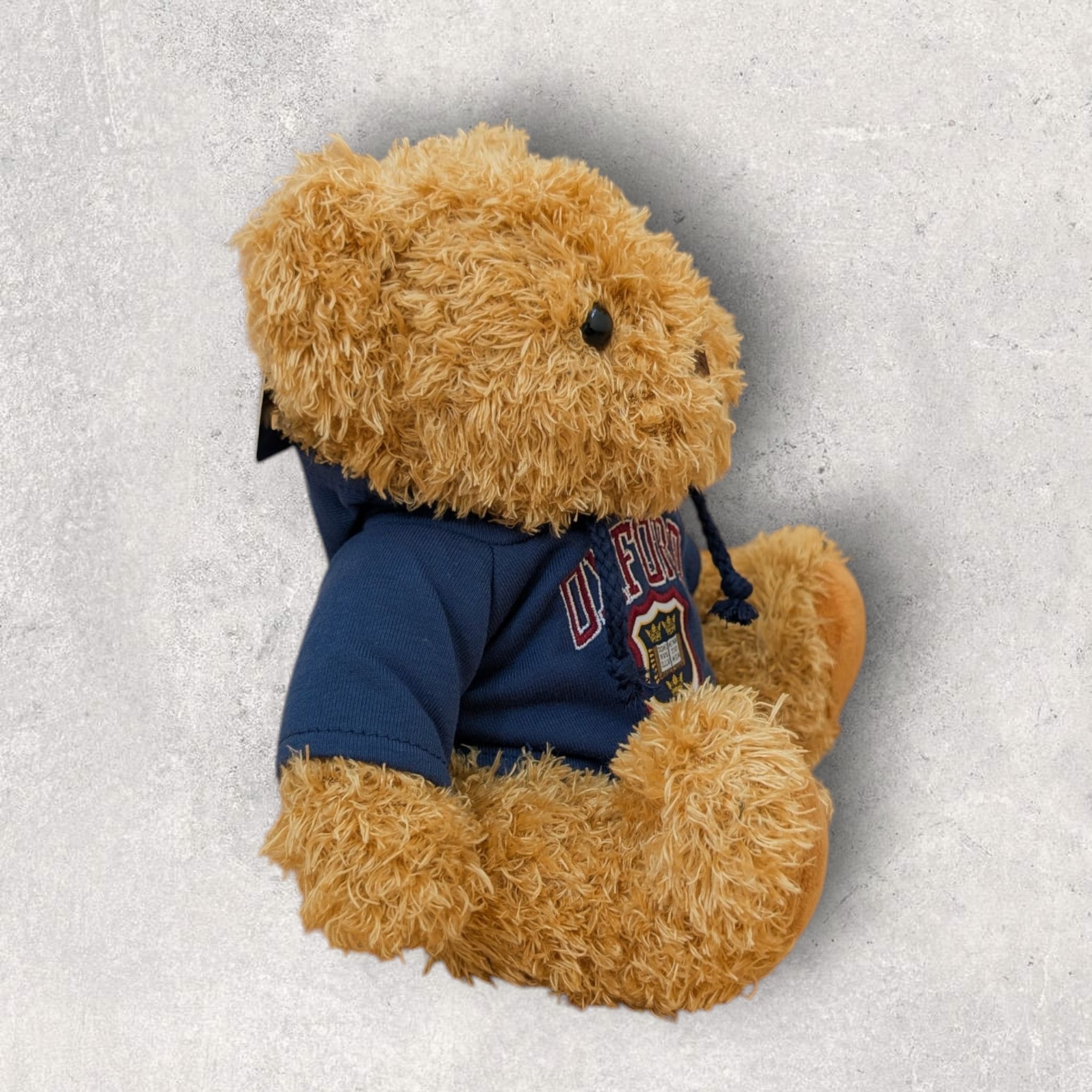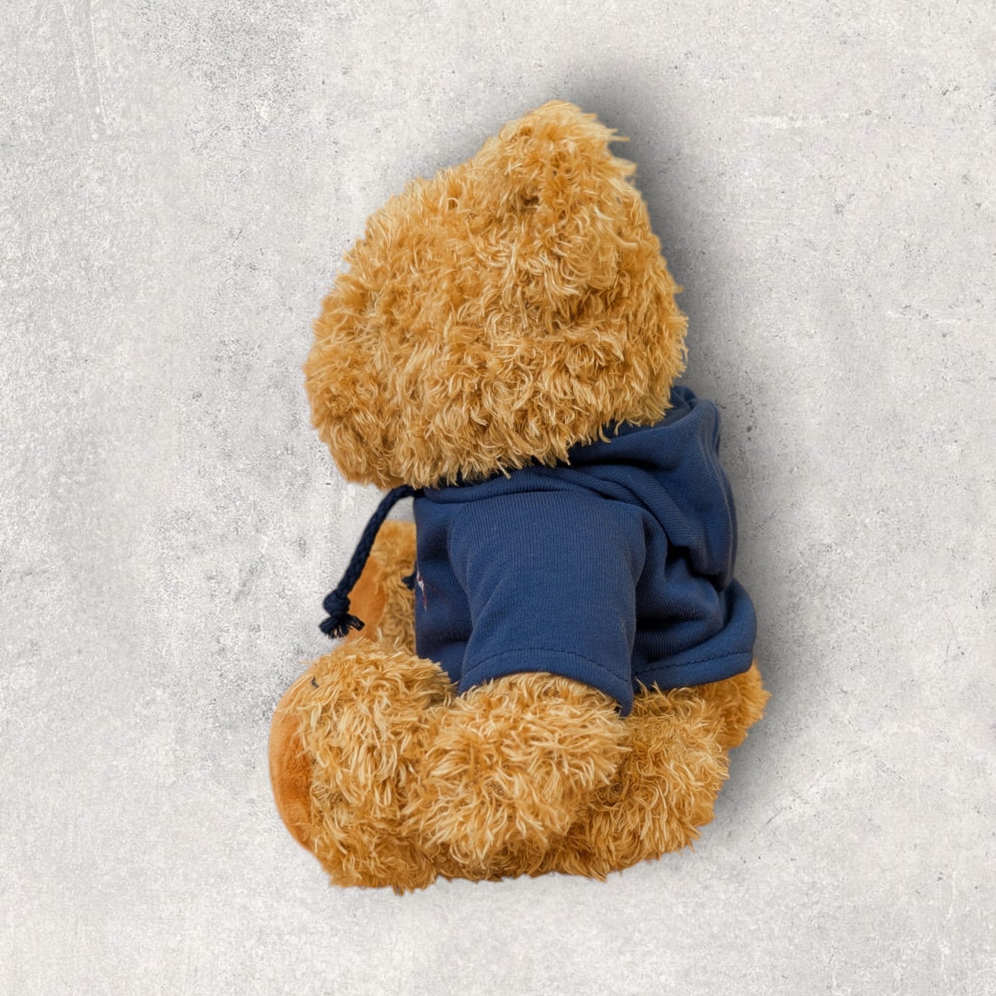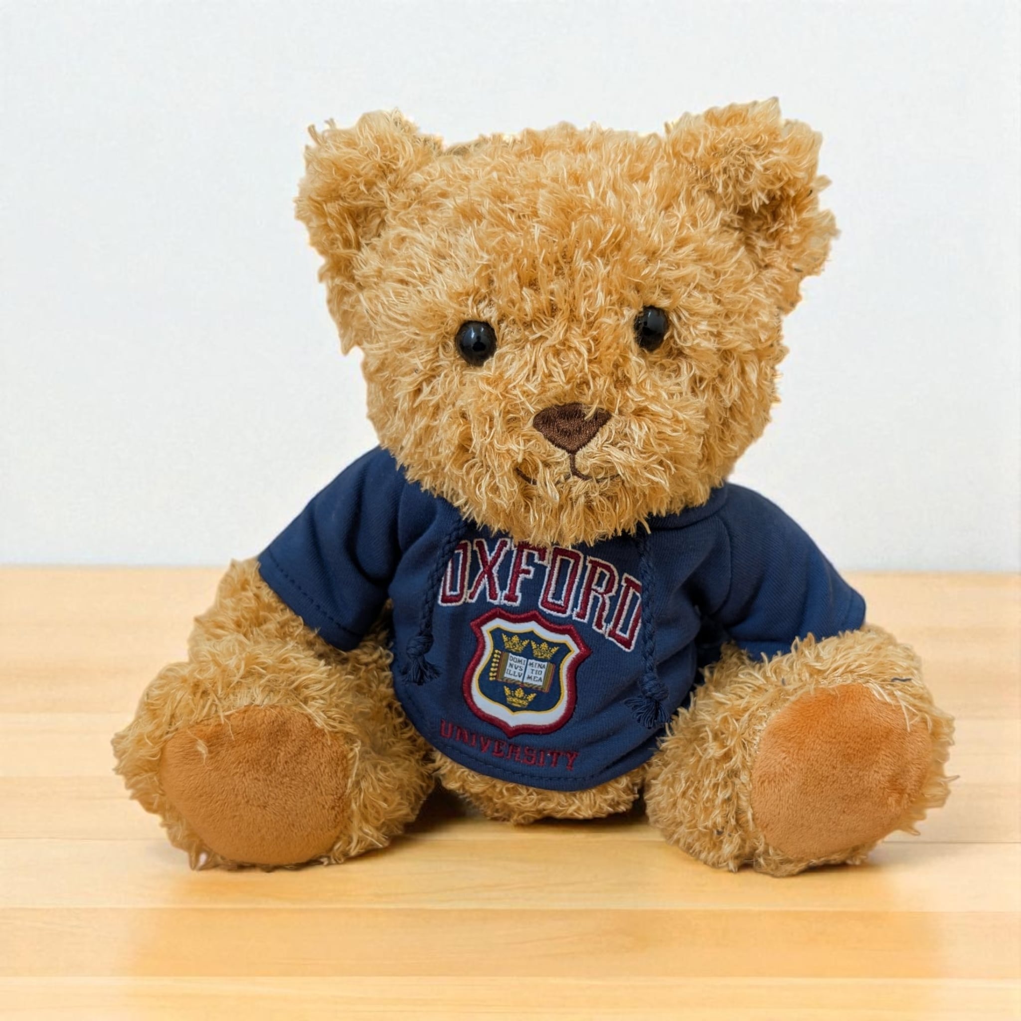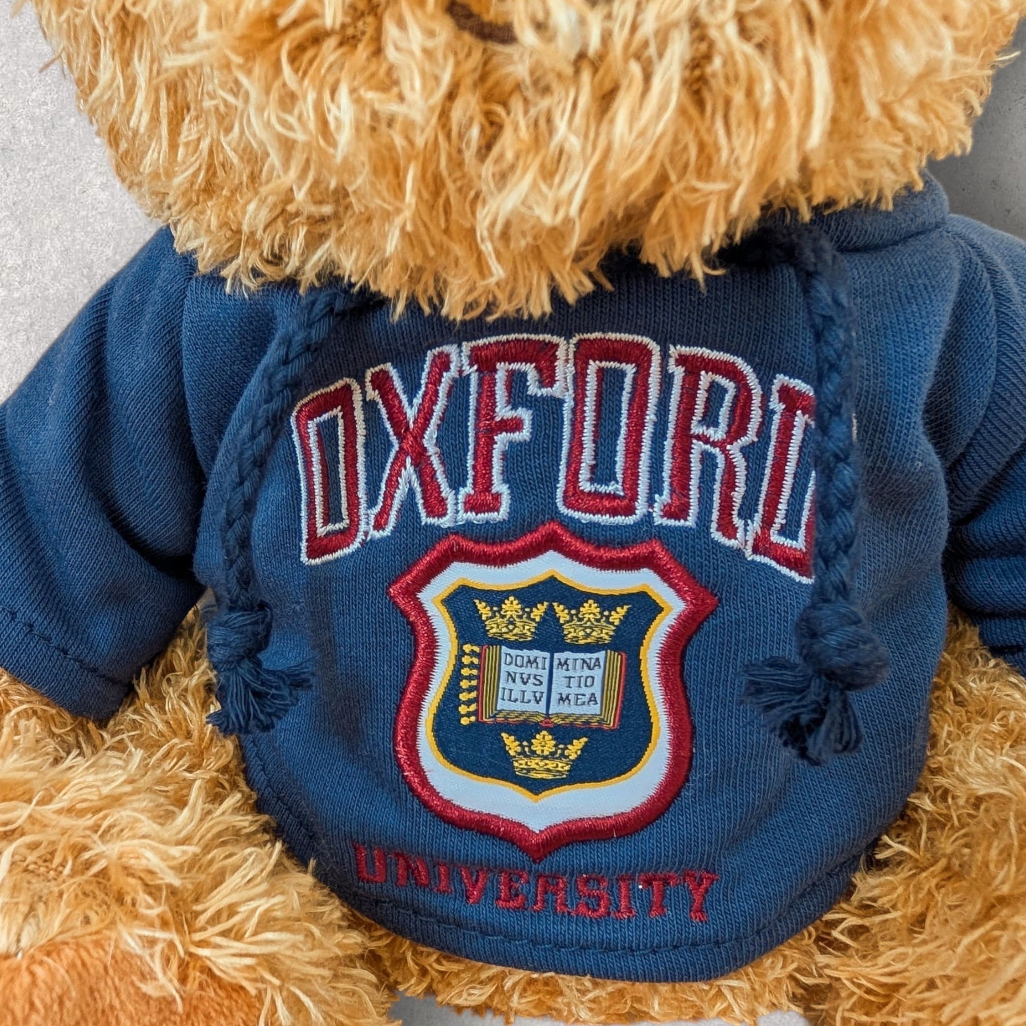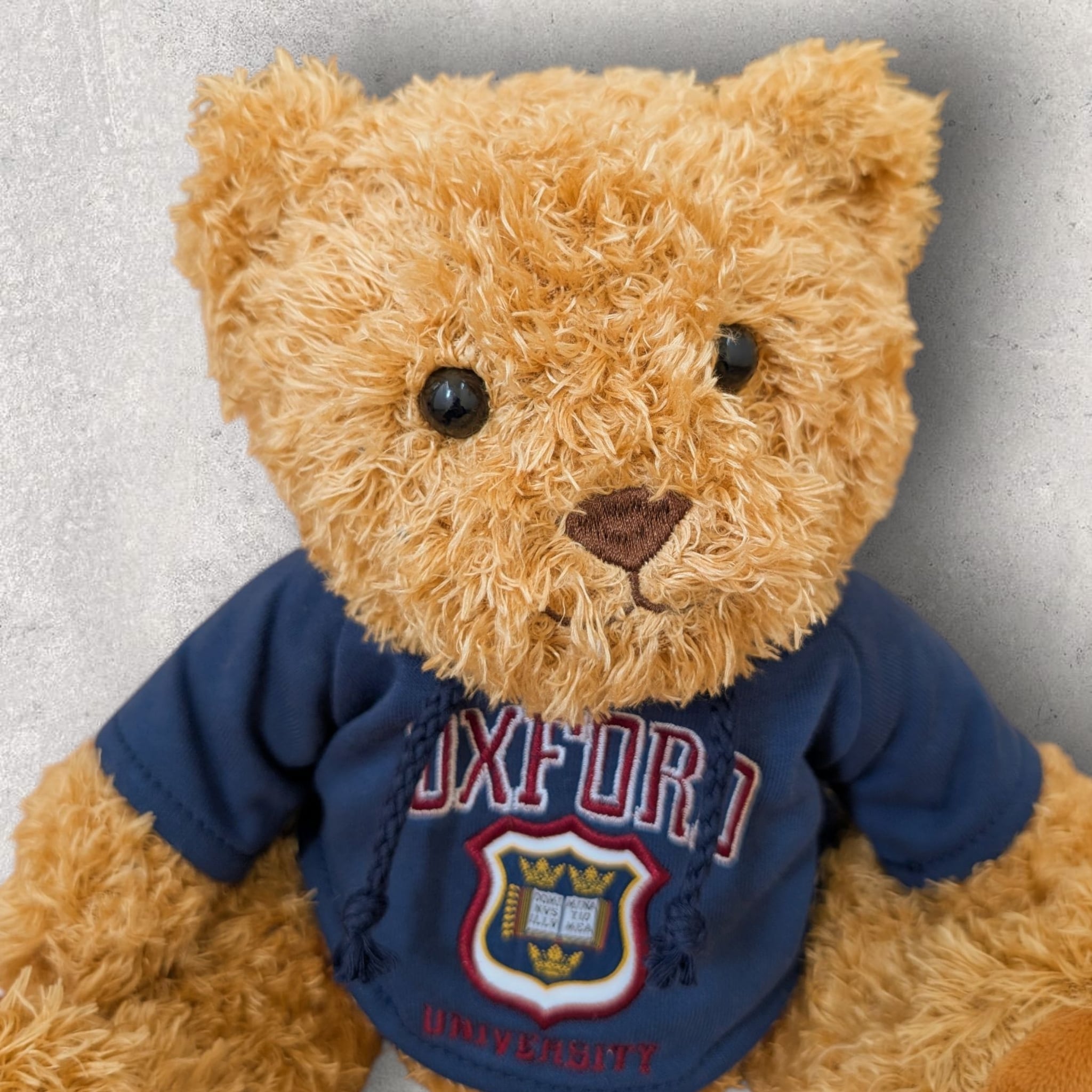 オックスフォード大学オフィシャルライセンスのテディベア。NAVYのパーカーにオックスフォード大学のシールド型の紋章が刺繍されています。