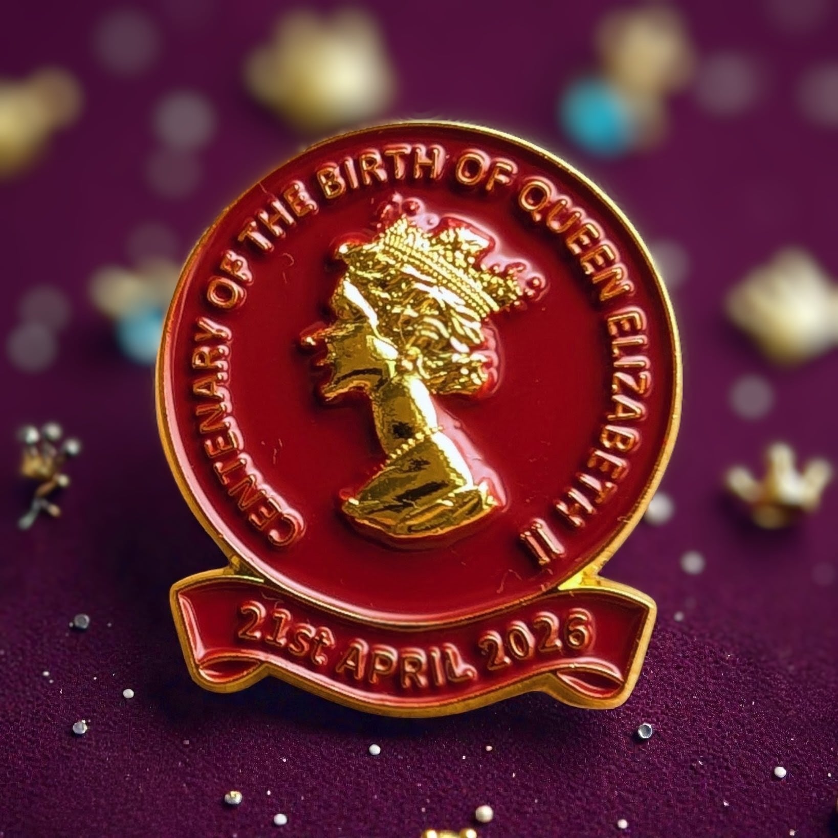 イギリス史上最長70年にわたり在位し、2022年9月8日15:10に崩御されてからもなお敬愛されるエリザベスⅡは2026年4月21日生誕100周年を迎えます。エリザベス女王の「CENTENARY(100周年)」を祝うピンバッジがデザインされました