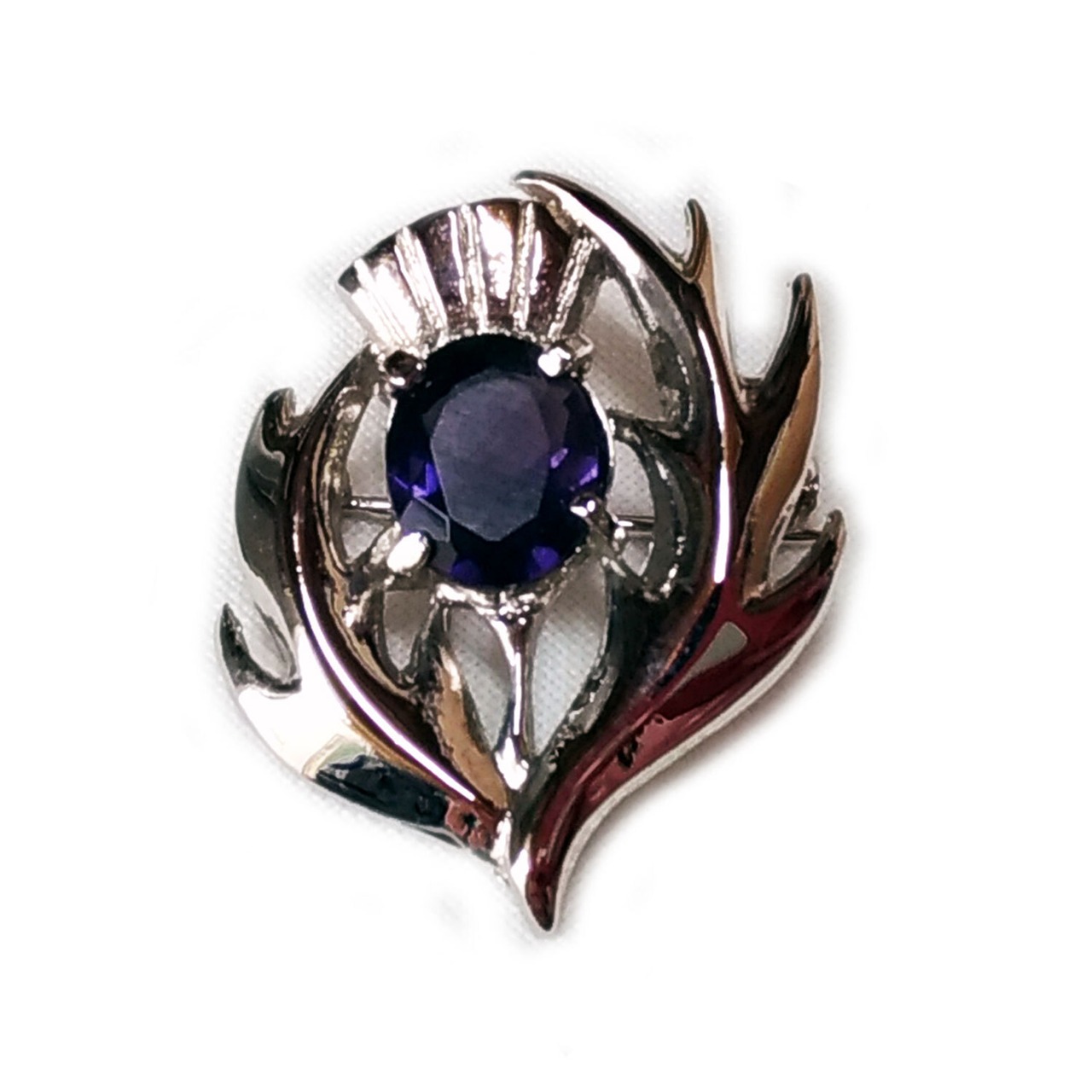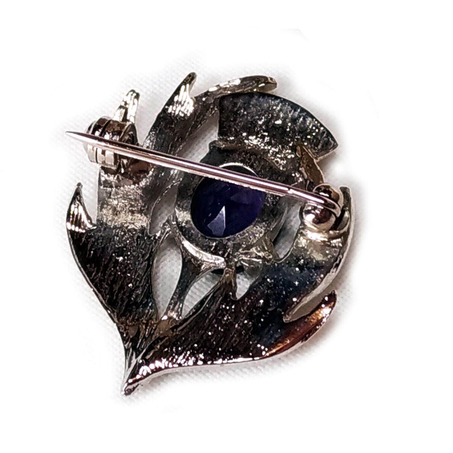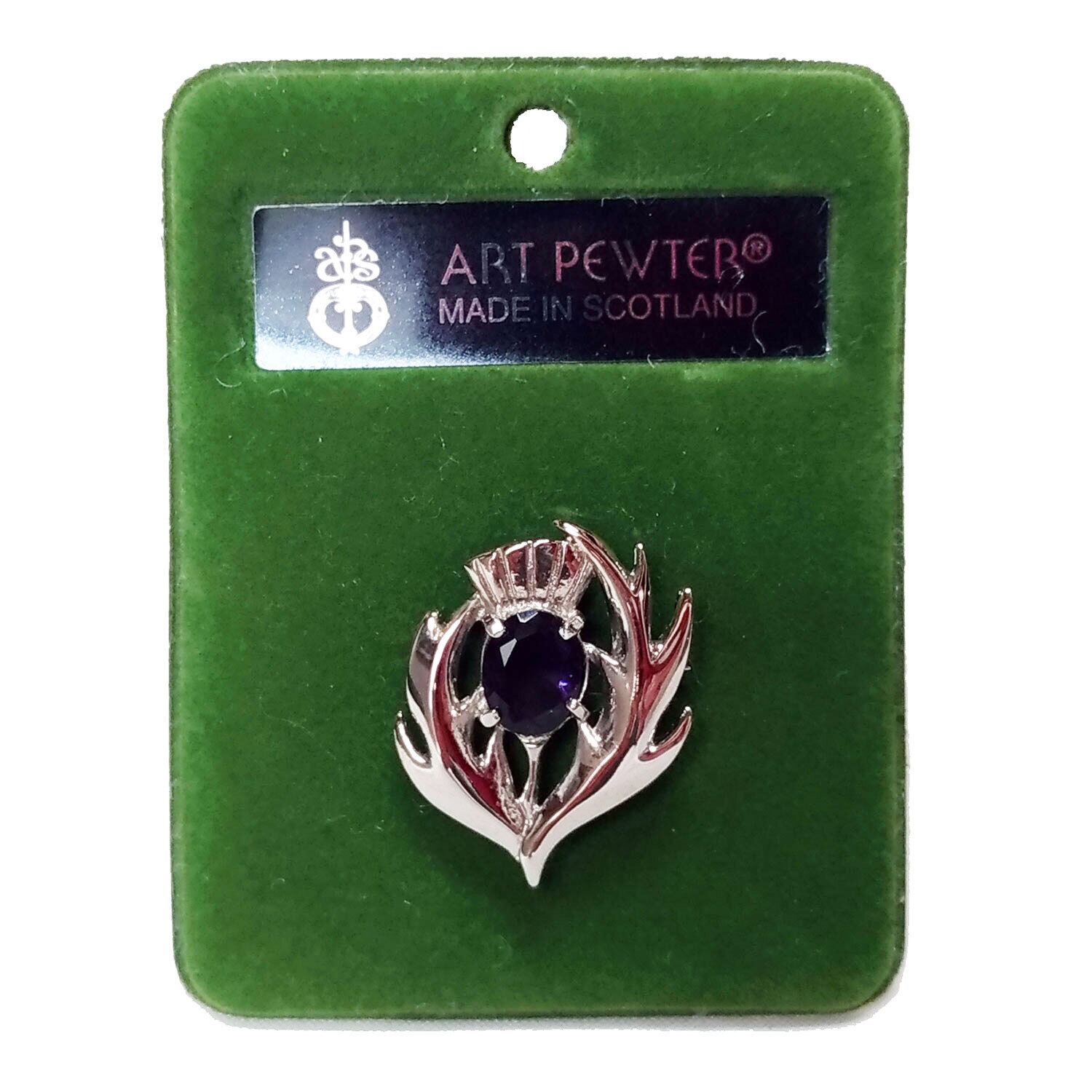 スコットランドの国花あざみをデザインしたブローチです。もちろん紫色のガラスはアザミの花の色をイメージされたものです。