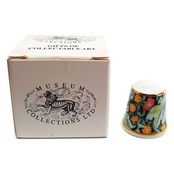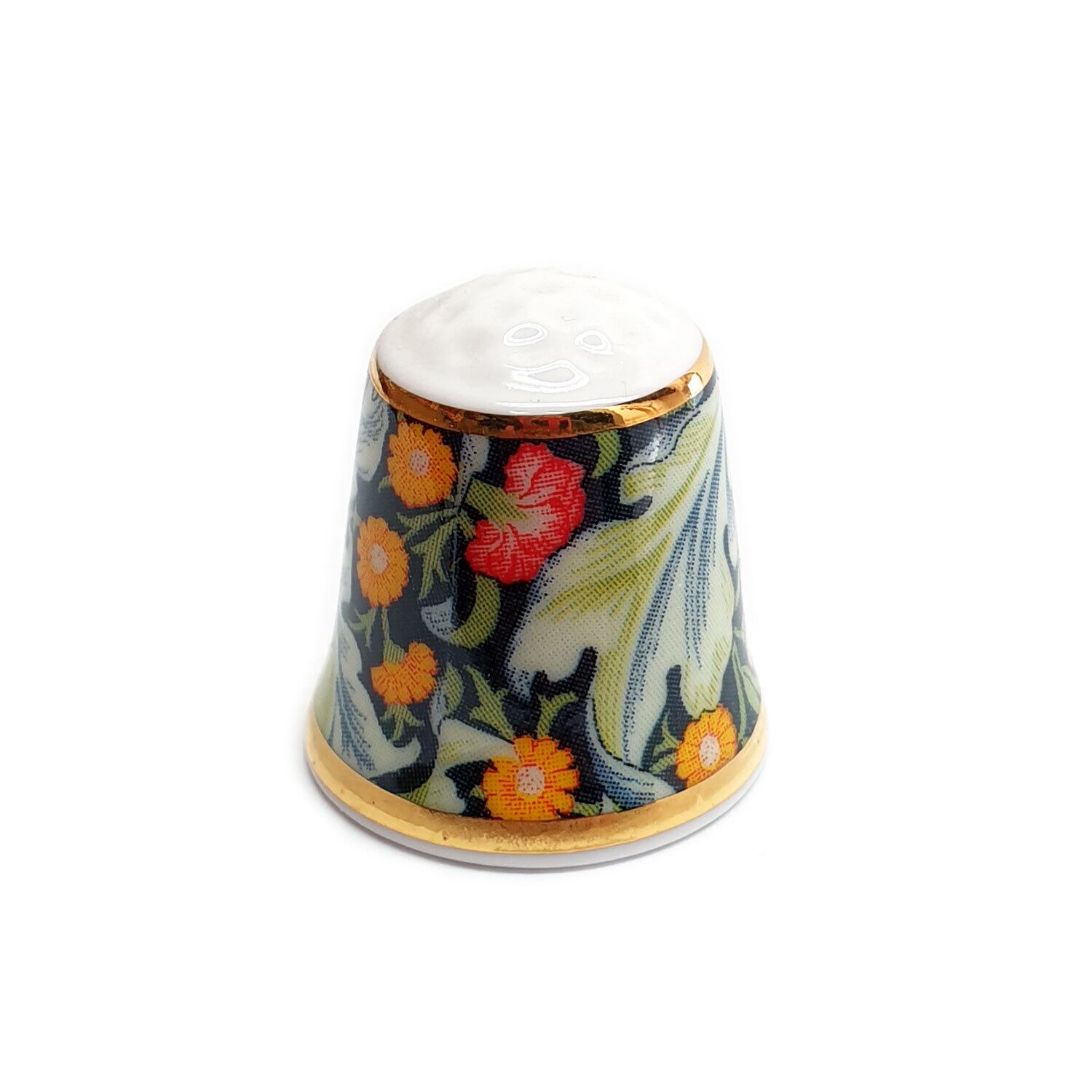 Museum Collections製の指貫(シンブル)。ミュージアムコレクションのウィリアムモリス・シリーズのレスター(Leicester)を描いたシンブルです。レスターは、モリスの一番弟子ジョン・ヘンリー・ダールがモリスの初期のデザイン「Bachelors Button」に影響を受けデザインしたものです。