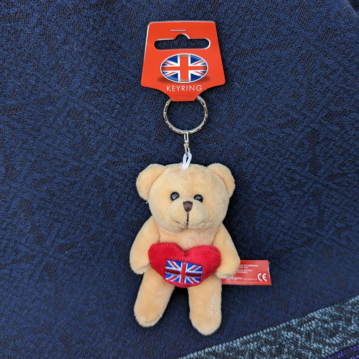 英国でも人気のテディベアをキーホルダーにしました。ユニオンジャックが刺繍された真っ赤な大きなハートを抱えてる姿には、英国への愛を感じます。足りなくなったロンドン旅行のお土産にもオススメです!