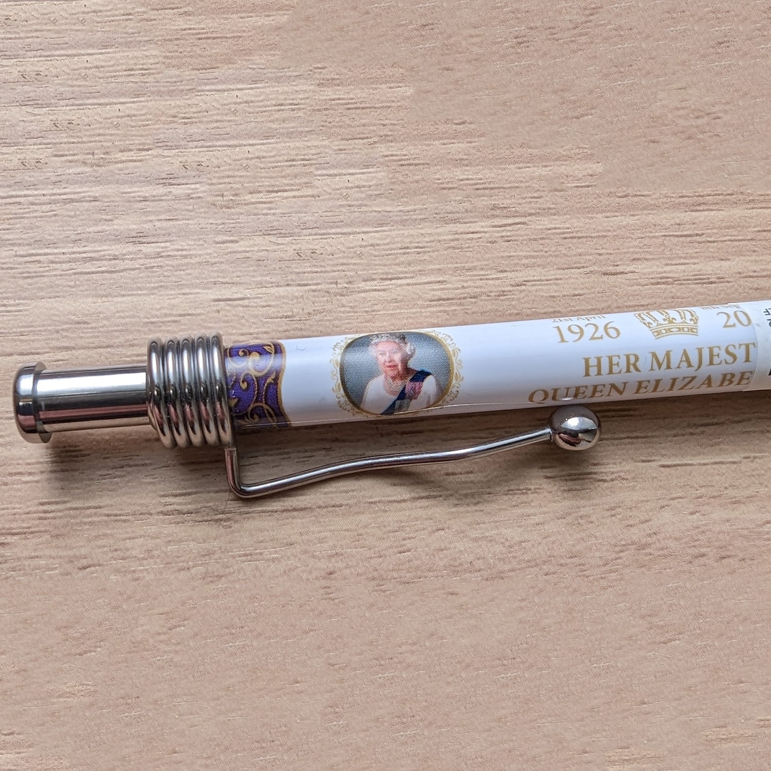 エリザベス女王がご生存なされた年号が刻印されたボールペンでイギリス旅行のおみやげにも最適です!